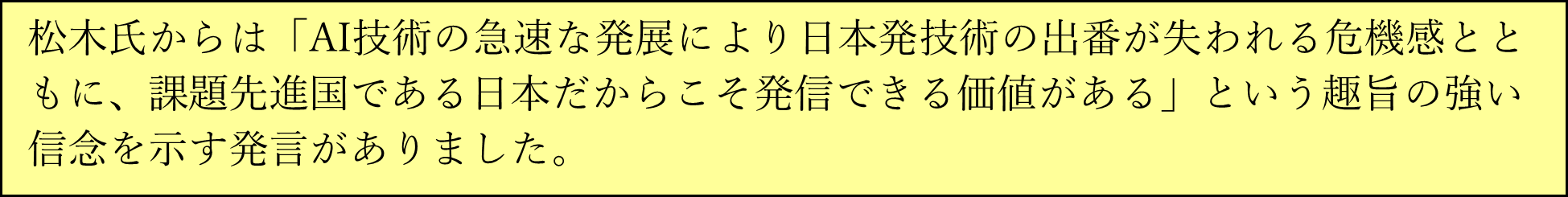 日本の失われた30年の要因のひとつに、情報活用の遅れがあるのではないかと思っています。1990年代のインターネット革命、2000年代のモバイル革命において、日本は技術では先行していながらもビジネスモデルの変革に乗り遅れました。今こそ、AIを徹底的に活用することで、次の時代の覇者になるために重要なものが何であるかを見極める必要があります。