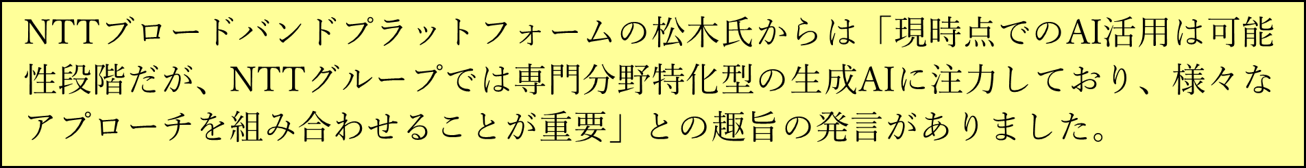時代は急速に変化しています。AI活用への積極的な取り組みなくして、日本の通信業界、ひいては日本社会全体の競争力維持は困難です。