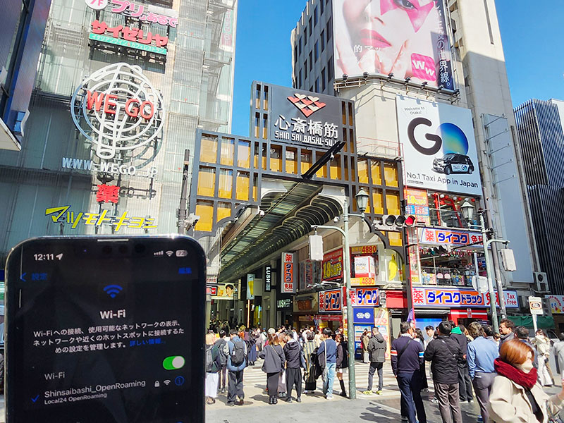 大阪では万博の開催を睨み、1日最大12万人の来訪者を誇る心斎橋筋商店街が2024年6月よりOpenRoamingの実証実験を開始(2025年3月より本運用)。