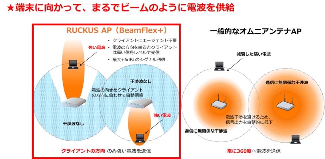 図2:RUCKUS BeamFlex+®と一般的なオムニアンテナとの違い
