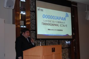 セミナーでは、まず総務省 北陸総合通信局 吉武 久局長のご挨拶で、災害時における通信サービスの重要性について提起があり、その後、無線LANビジネス推進連絡会で取り組んでいる「00000JAPAN」について、運用構築委員会副委員長中井から活動実績を説明致しました。